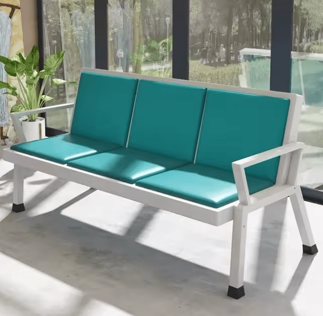 The bench features a spacious three-seater design that comfortably accommodates multiple users at once. Each seat includes thick, high-density padding that provides excellent support and comfort during extended sitting periods. The cushioned surface reduces pressure and enhances the overall seating experience, making it ideal for busy areas where comfort matters.